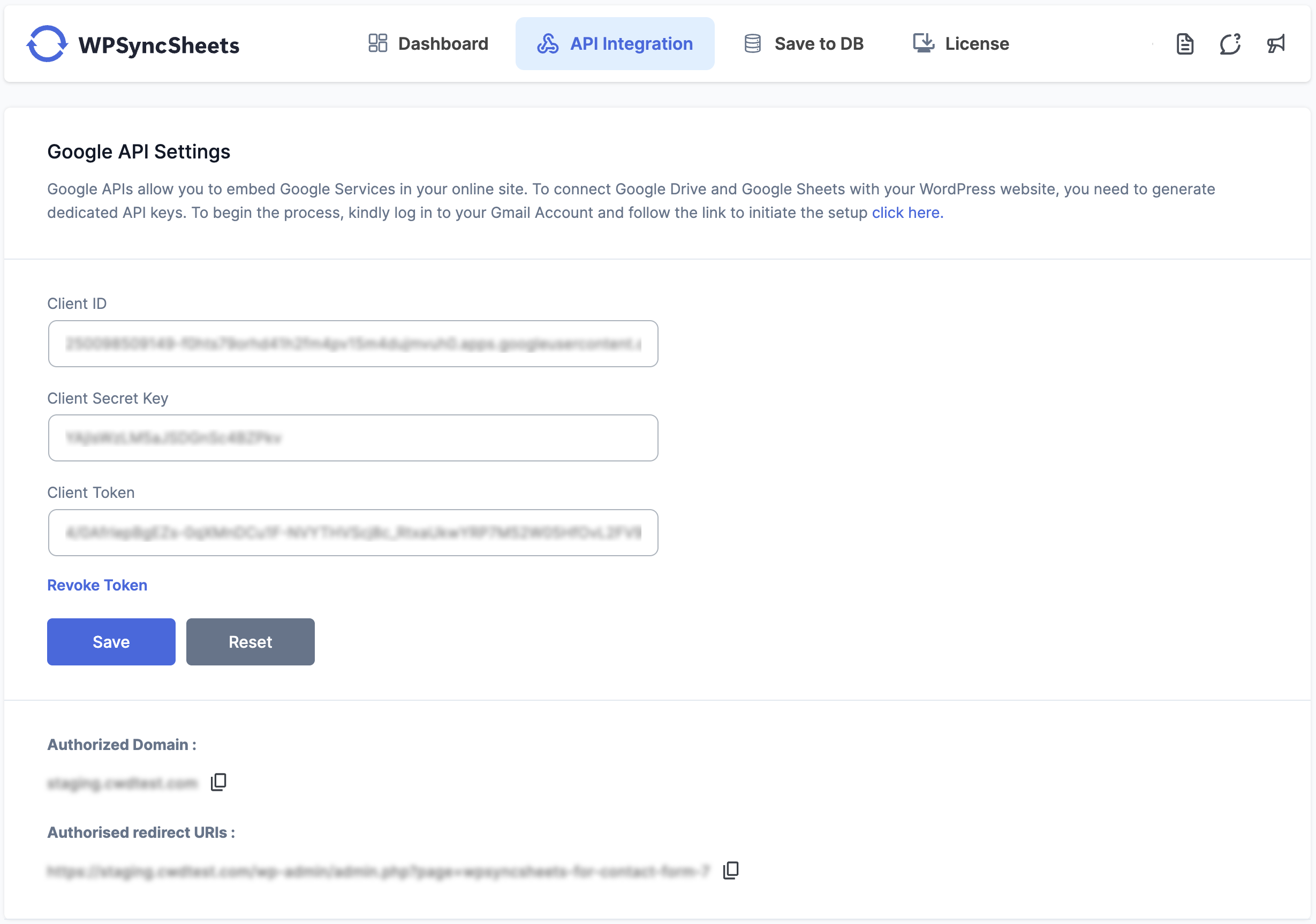 Get all options in one place. View, Clear, and Download your Google Spreadsheet with a single click from the plugin’s settings page.